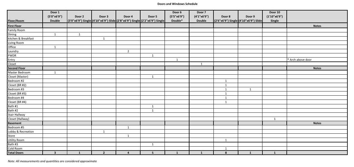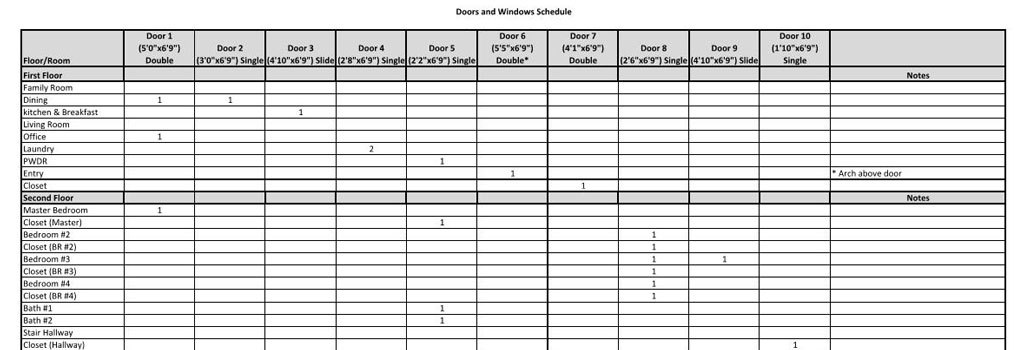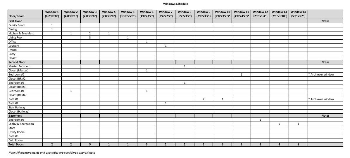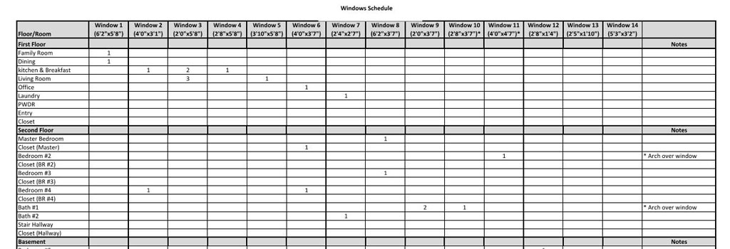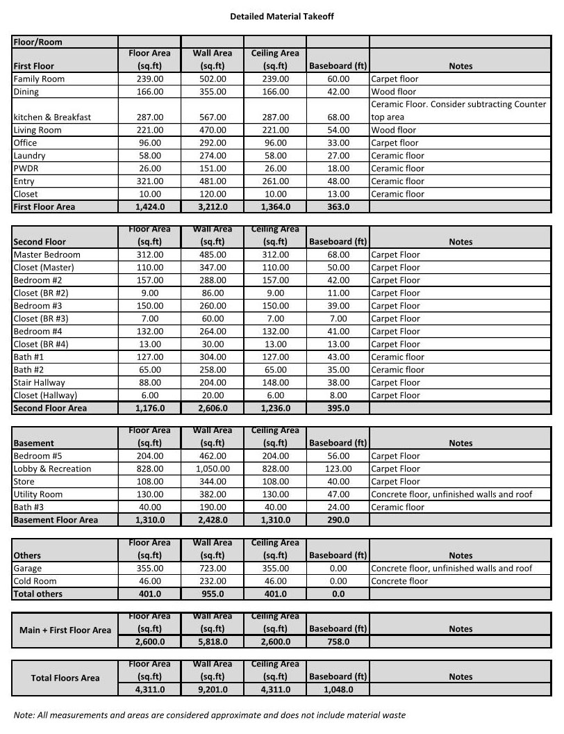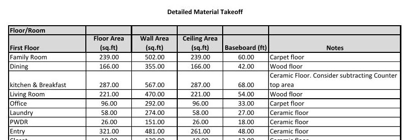 PFP Provides material take off schedules.